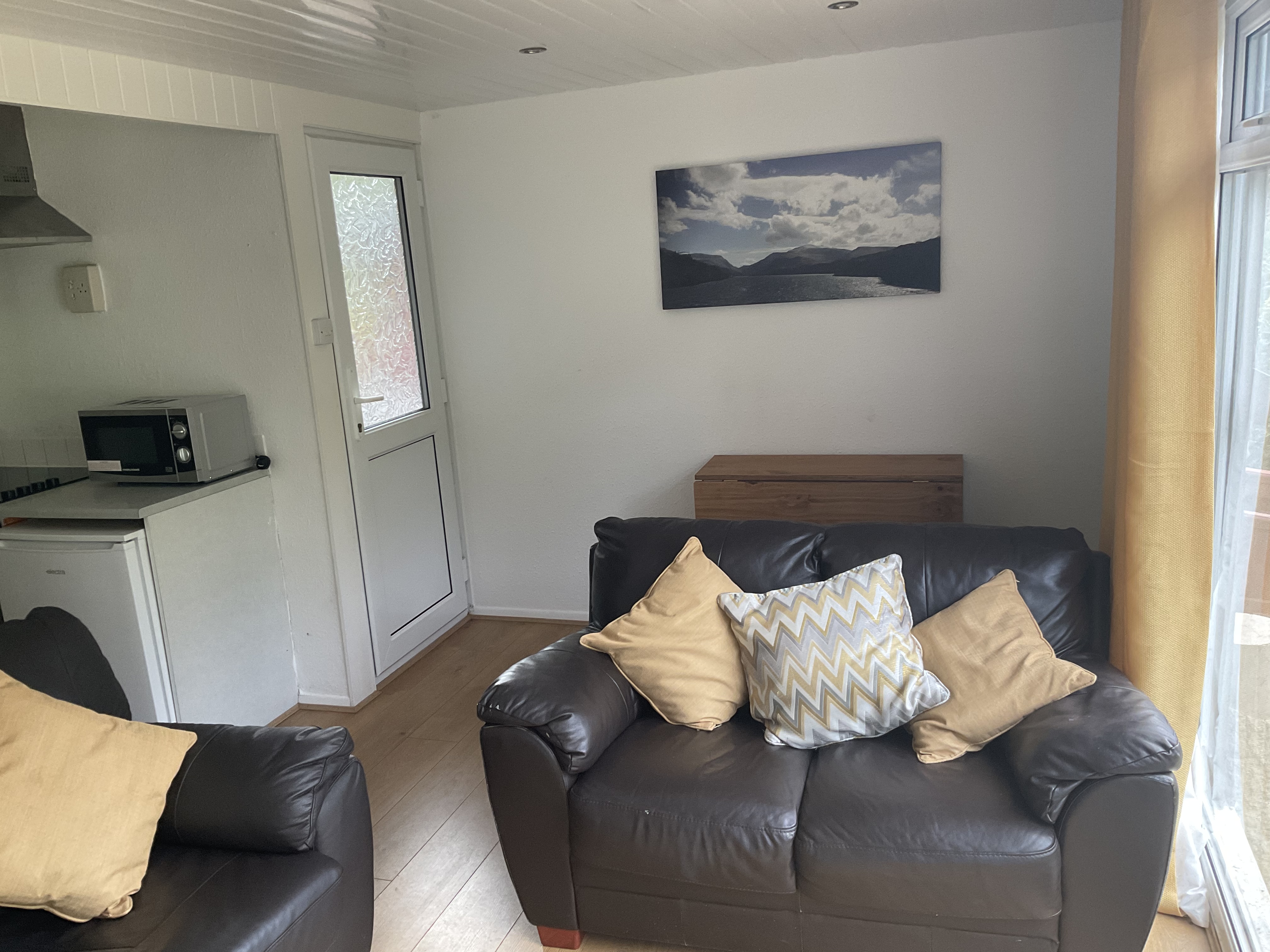 This cosy cabin can accommodate up to five people in two bedrooms. Bedroom 1 has a double bed, Bedroom 2 has a double and a single in the form of bunk beds.